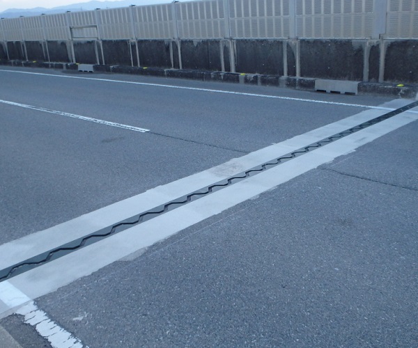橋梁の路面端部に設置されるもので、気温の変化による橋梁の伸縮、地震時および車両の通行にともなう橋梁の変形を吸収するものです。