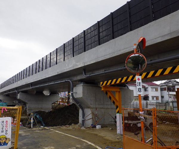 落下物防止柵は、高架橋と交差する鉄道・道路・民家等への車両積載物の落下や投物等を防止するためのものです。